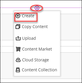 - In the Course Content area, hover your mouse where you want to add a journal and select the plus sign > Create. [view screenshot]