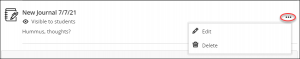 - Show or hide the journal. New journals are hidden by default. Students can't access a journal until you choose to make it available to students. You can create all your content ahead of time and choose what you want students to view based on your schedule. You can also set availability conditions based on date, time, and performance on other items in the course gradebook. On the Course Content page, students can see when you set the journal to show.
