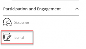 On the Course Content page, select the plus sign wherever you want to add a journal. Select Create, then scroll down to the Journal button at the bottom of the Create Item panel. You can also expand a folder or learning module to add a journal within them.