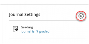 - To set the journal as gradable, select the settings icon (top-right corner) to open the Journal Settings panel. When you choose to grade a journal, more options appear such as due date, maximum points, and adding a rubric. [view screenshot]