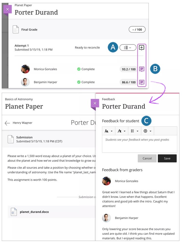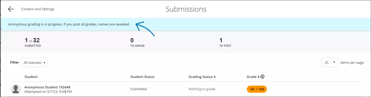 Grading anonymously helps faculty avoid bias in assessment by hiding student names while you grade. Names are revealed only after you post all grades.
