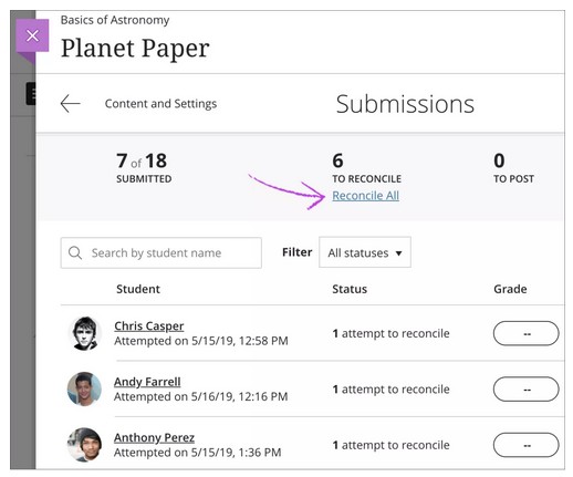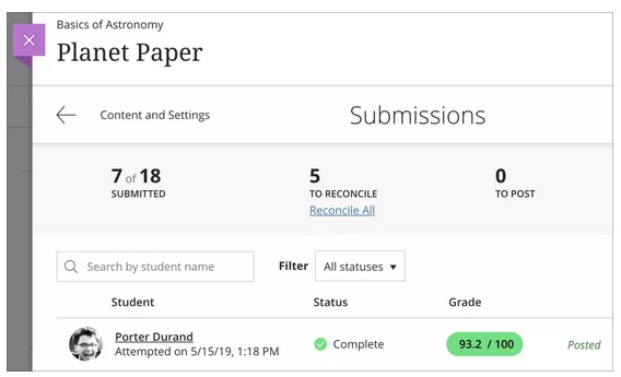 You can enable SafeAssign for an Assignment or Test with Anonymous Grading enabled, but you will not be able to view SafeAssign results or Originality Reports until after all grades are posted. You cannot use peer review, automatic grade posting, or assessment results settings when anonymous grading is enabled.